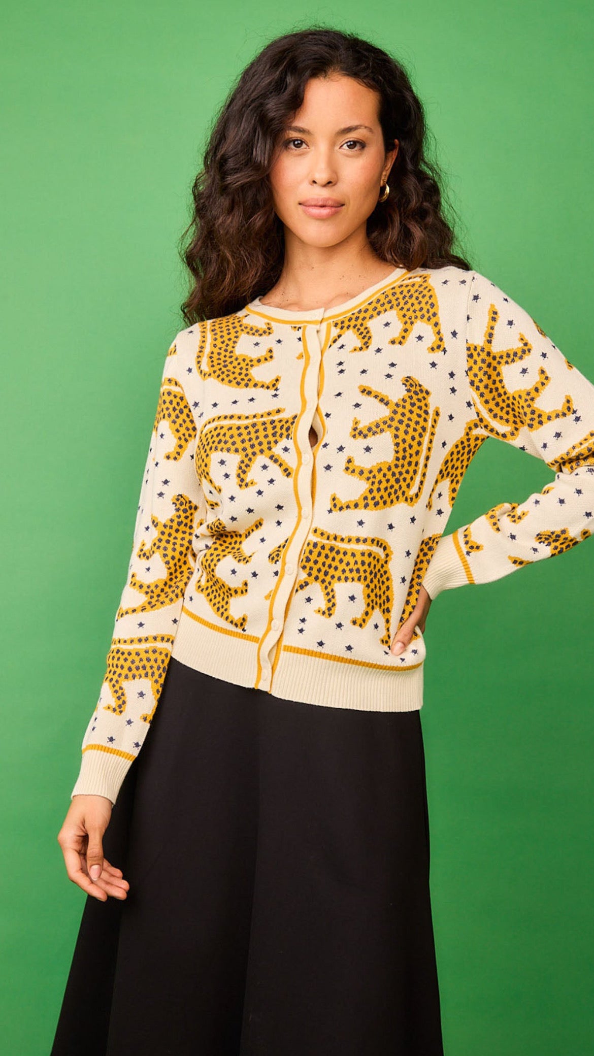 Dale un toque único a tus looks con esta rebeca de punto estampada.