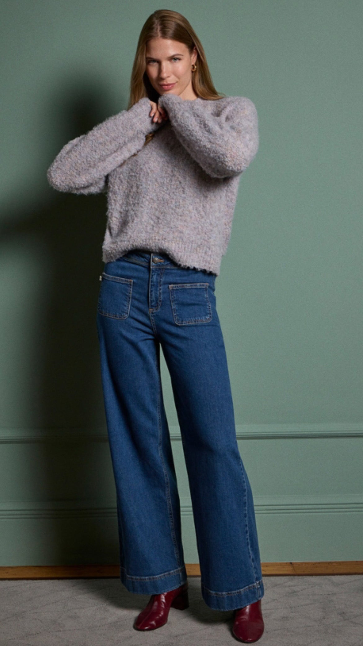 Este vaquero de tiro alto y corte ancho combina estilo retro con comodidad moderna. Confeccionado en una mezcla de algodón, Tencel y un toque de elastano, aporta suavidad, resistencia y libertad de movimiento. Su diseño con bolsillos frontales y silueta amplia crea un efecto visual que estiliza y alarga la figura, convirtiéndolo en un básico versátil y favorecedor.
