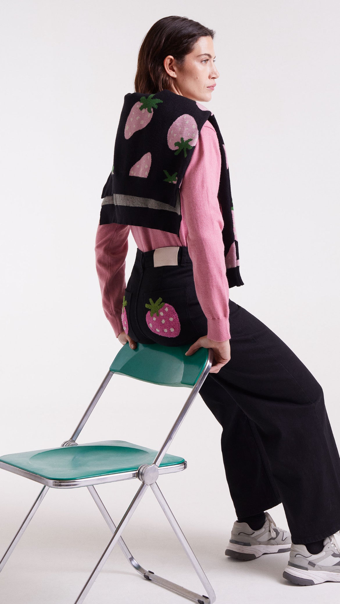 - 🍓 Detalles únicos: bordados de fresas en la parte trasera que marcan la diferencia.