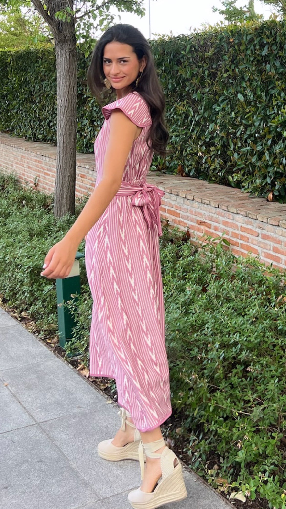 – Estampado geométrico vertical en tonos rosa y blanco